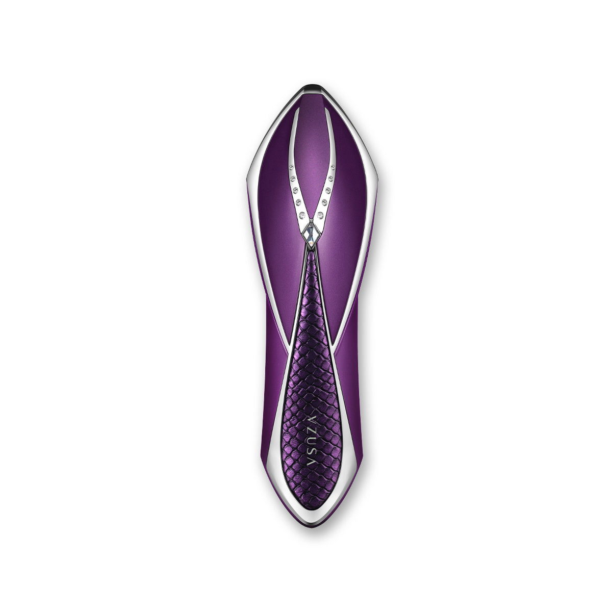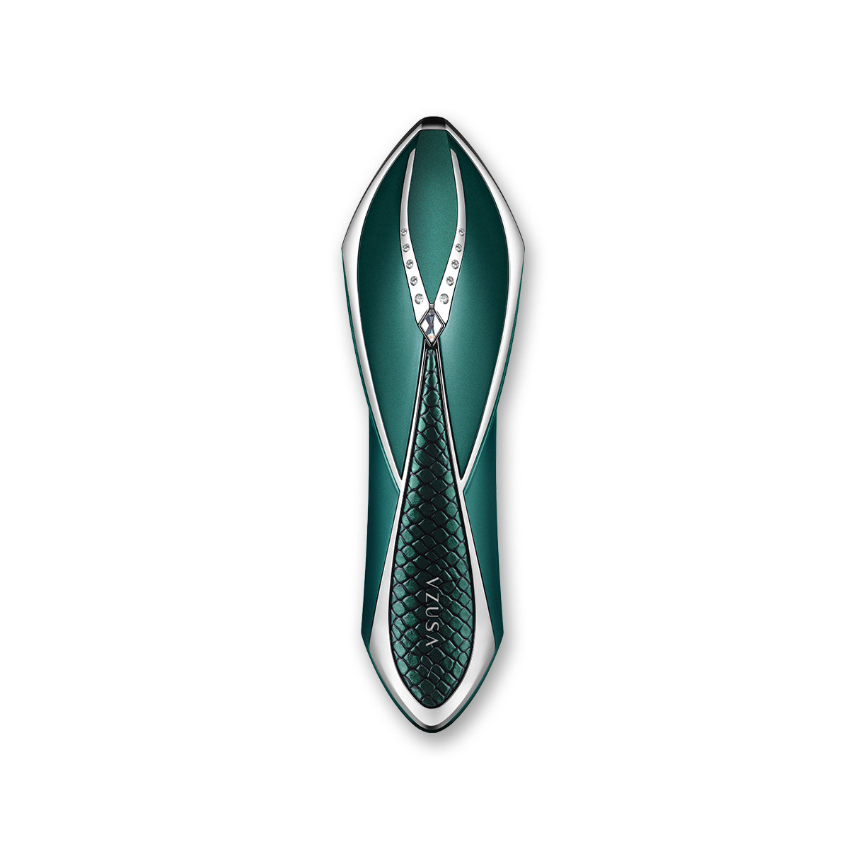 Массажер имеет роскошный дизайн с кристаллами Swarovski и воловьей кожи, принт имитирует кожу питона.